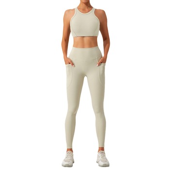 Ensembles d'entraînement pour femmes Deux pièces Bretelles Spaghetti Débardeur Correspondant Taille Haute Leggings Gym Work Out Tenues avec poches